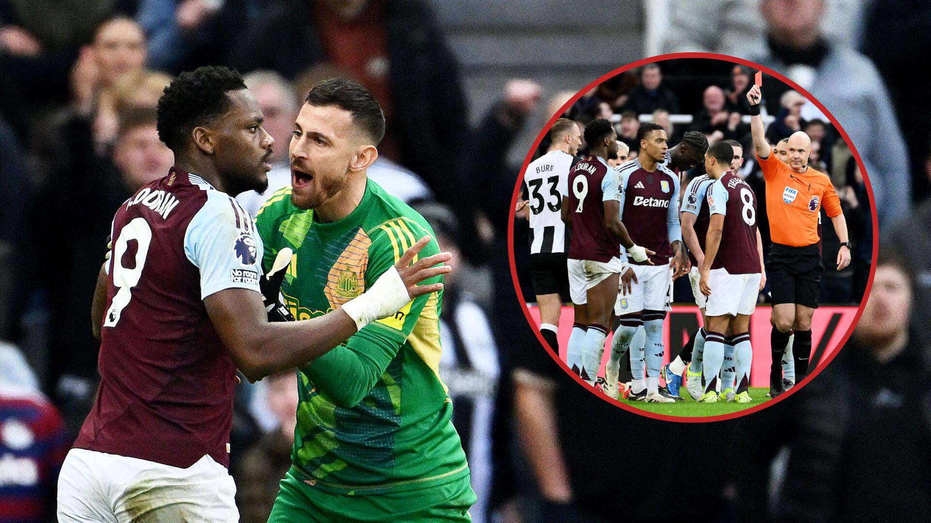 Jhon Jáder Durán fue expulsado porque piso dos veces a un rival en el partido Newcastle vs. Aston Villa, por la Fecha 18 de la Premier League 2024-25.